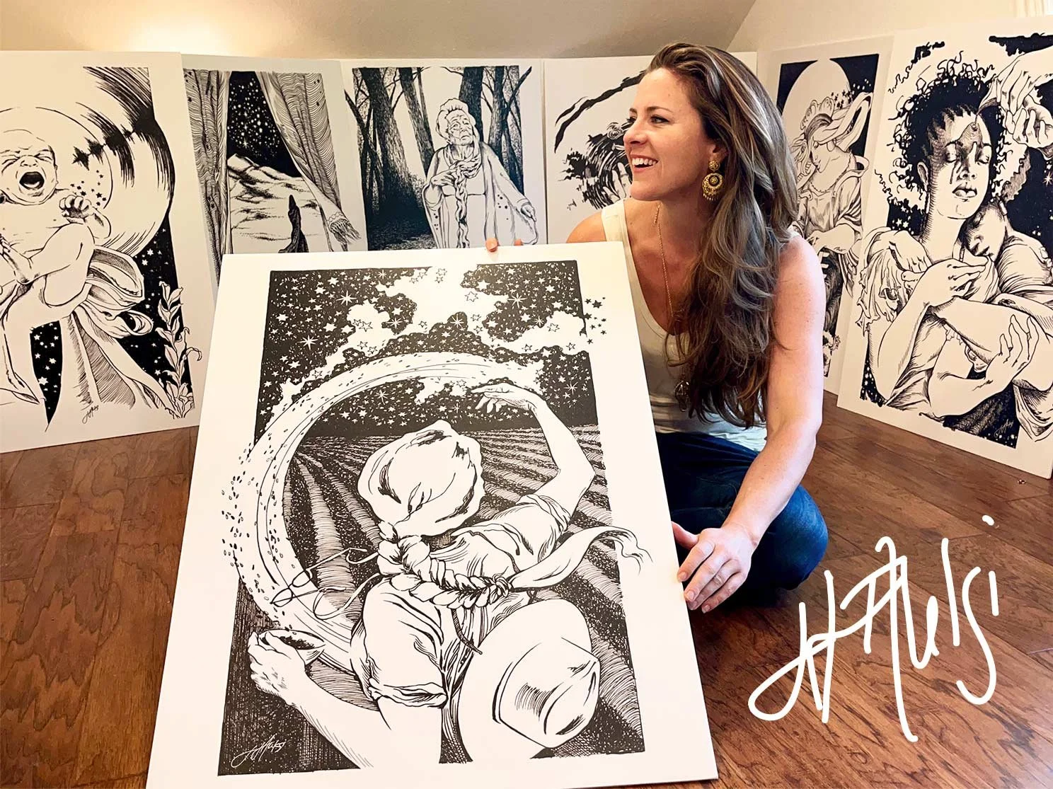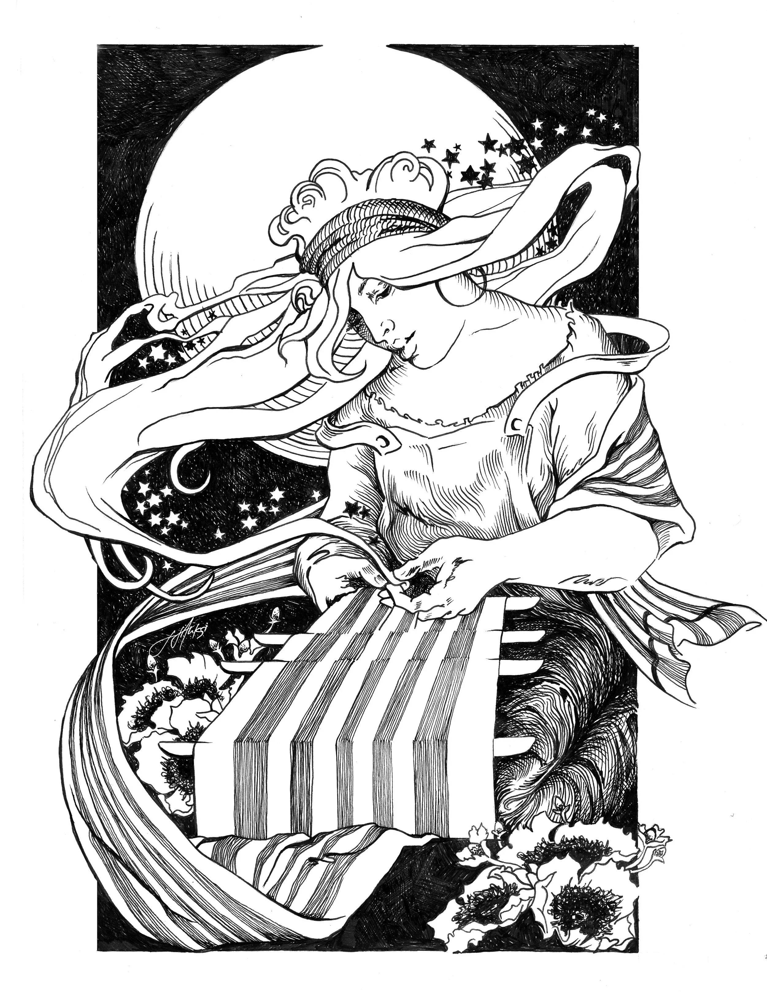 Embarking on this artwork series for the book HER RITES with Dr. Christy Bauman has been an exciting challenge and great honor. The wonder and excitement has all but grown exponentially since placing my pen down. Each art piece serves as a portal into a specific right of passage. It’s the first view, meant to open your heart visually to the intent, the message and the heart of what you are about to embark on in that chapter. Without reading the chapter, the image serves to be a visceral moment felt as well as visually read, as the artwork unfolds itself to you.
